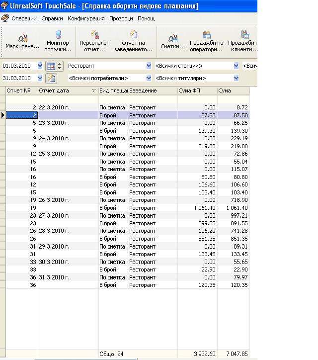 Може ли в справка продажба по обороти да има и тотал в колоните на различните видове плащания, понеже сега се вижда само за конкретната дата, но не и за цялия месец?