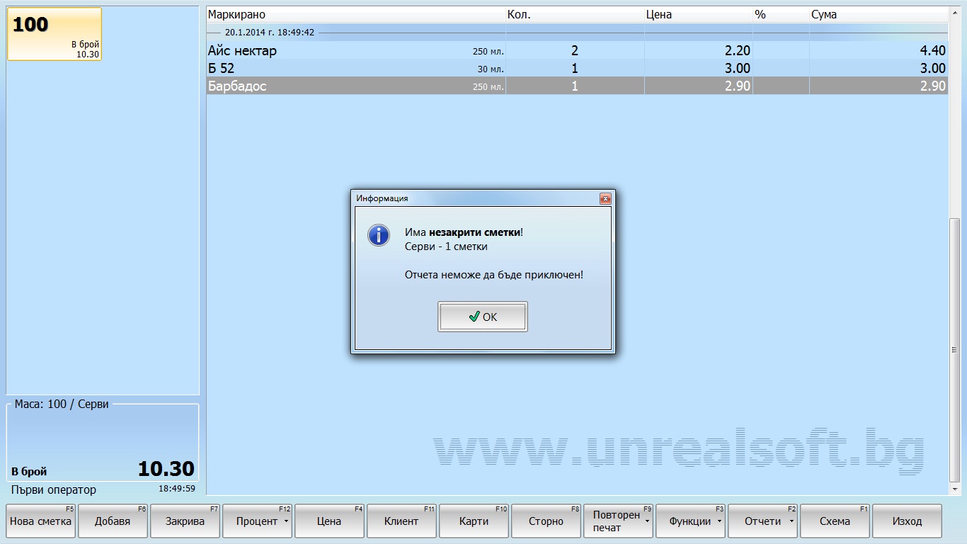 Неговото предложение е при пускане на отчета на заведението когато има незакрити сметки излиза